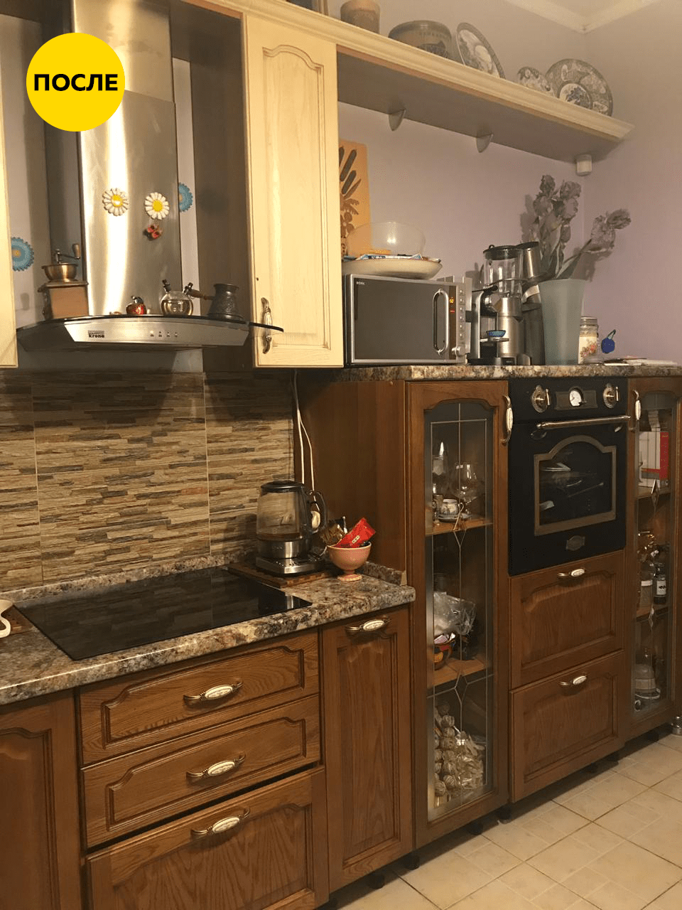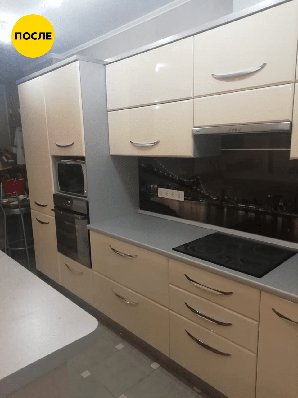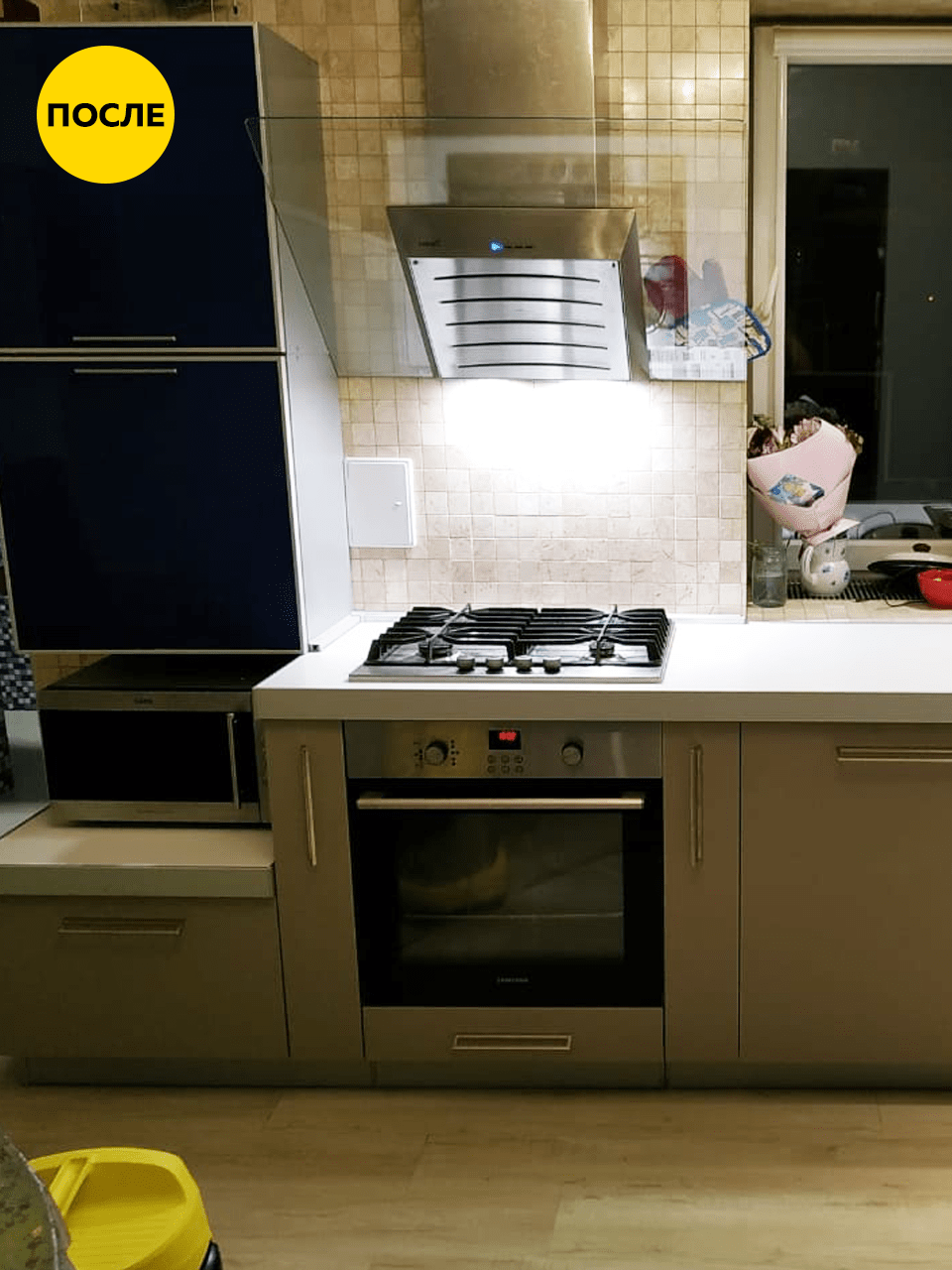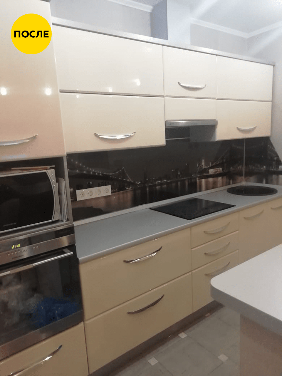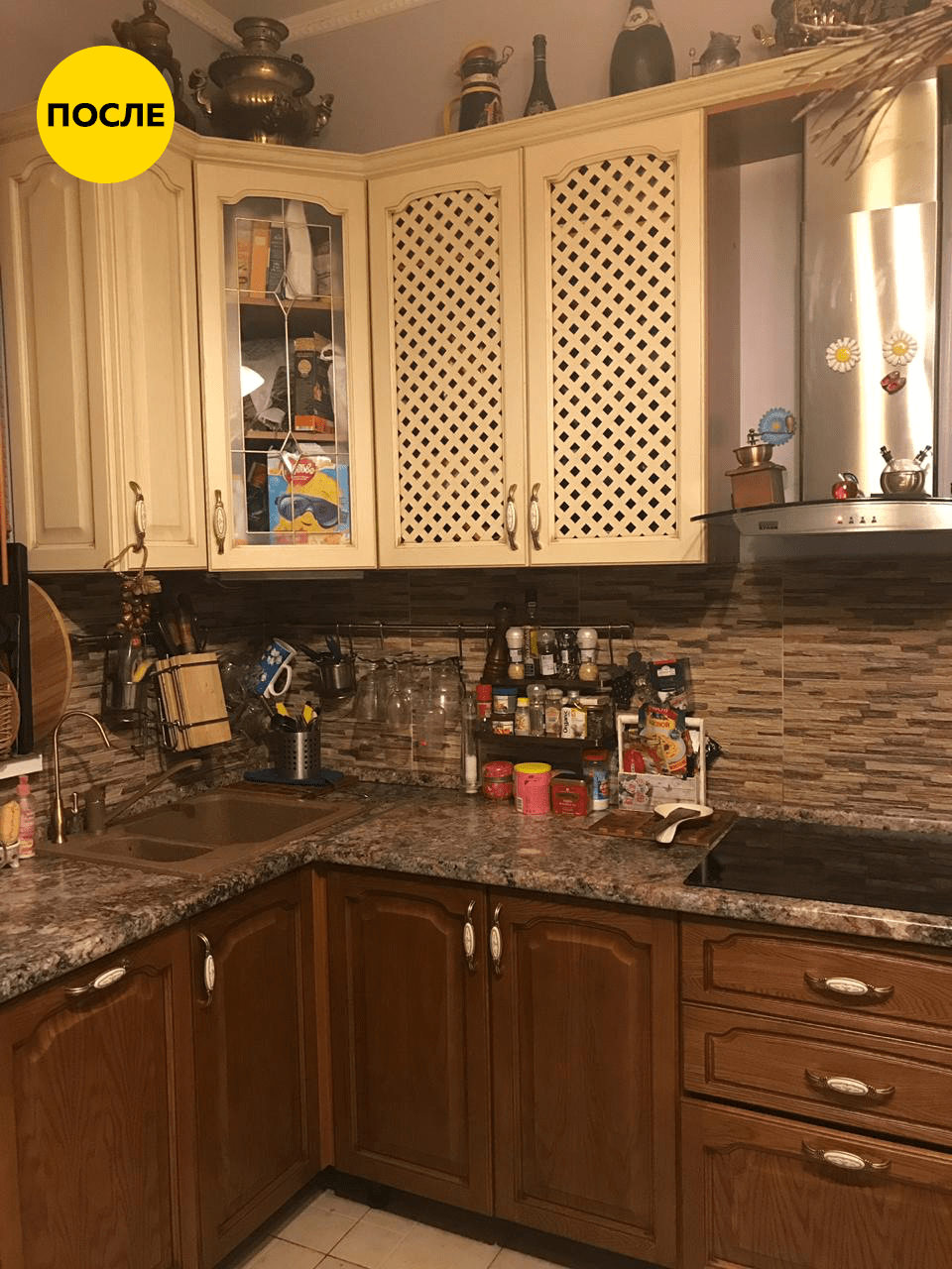 Установка кухни. Фасады Массив дуб+шпон, модель Элен (Бристель крем, патина шампань), корпус Эггер ваниль, кромка 2 мм, карниз Прованс, столешница искусственный камень Samsung AB 632, стекло сатин матированный, ручки бронза Флоренция, цоколь ПВХ ваниль, ящики тандембокс, авентос HF, бутылочница с доводчиком, сушка 2-х уровневая VIBO.