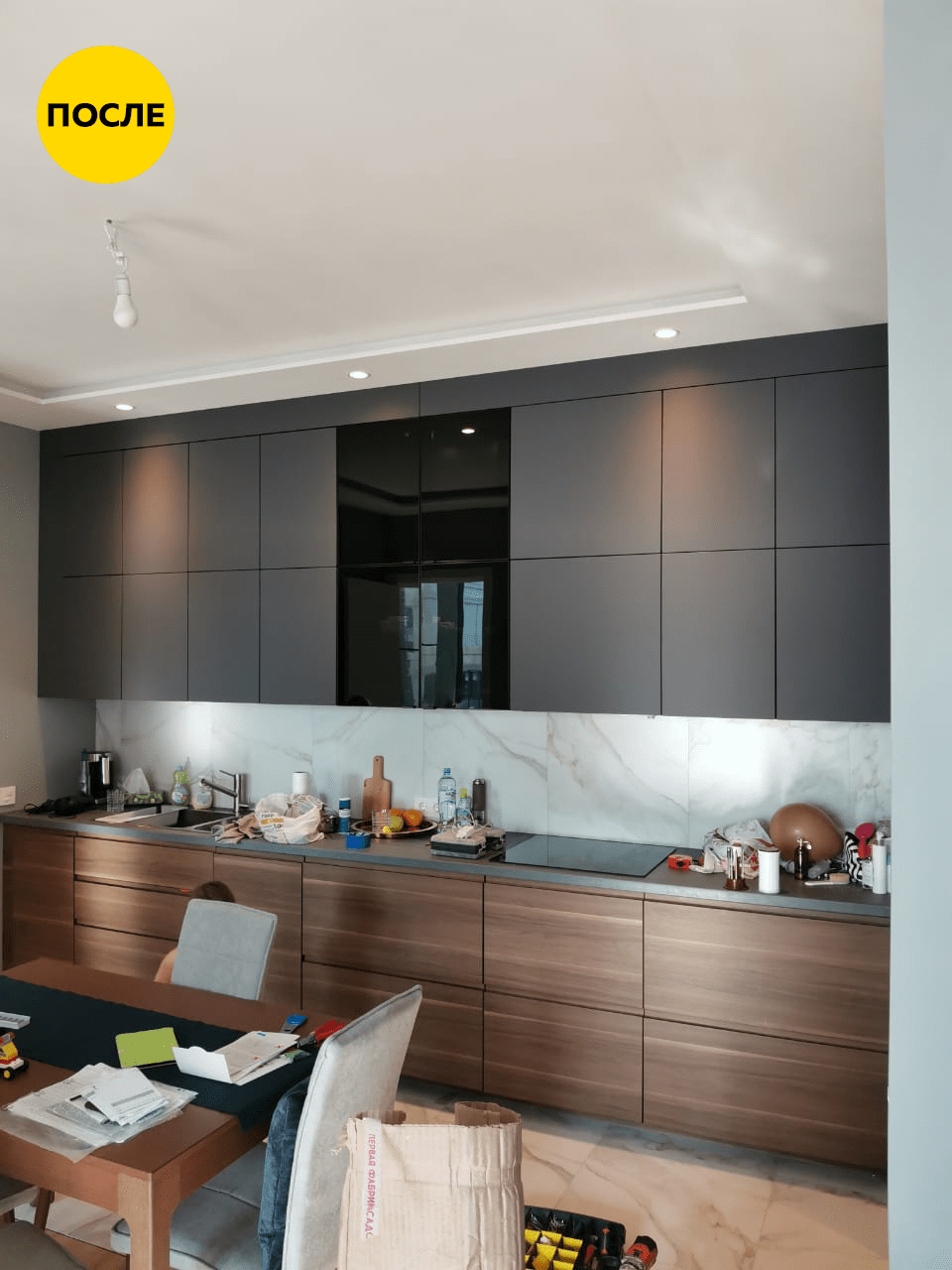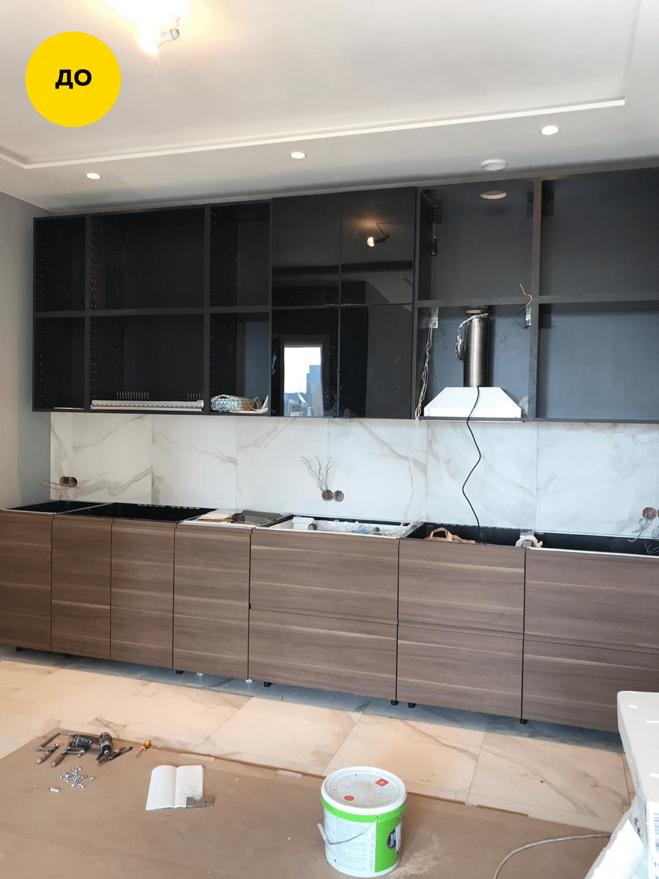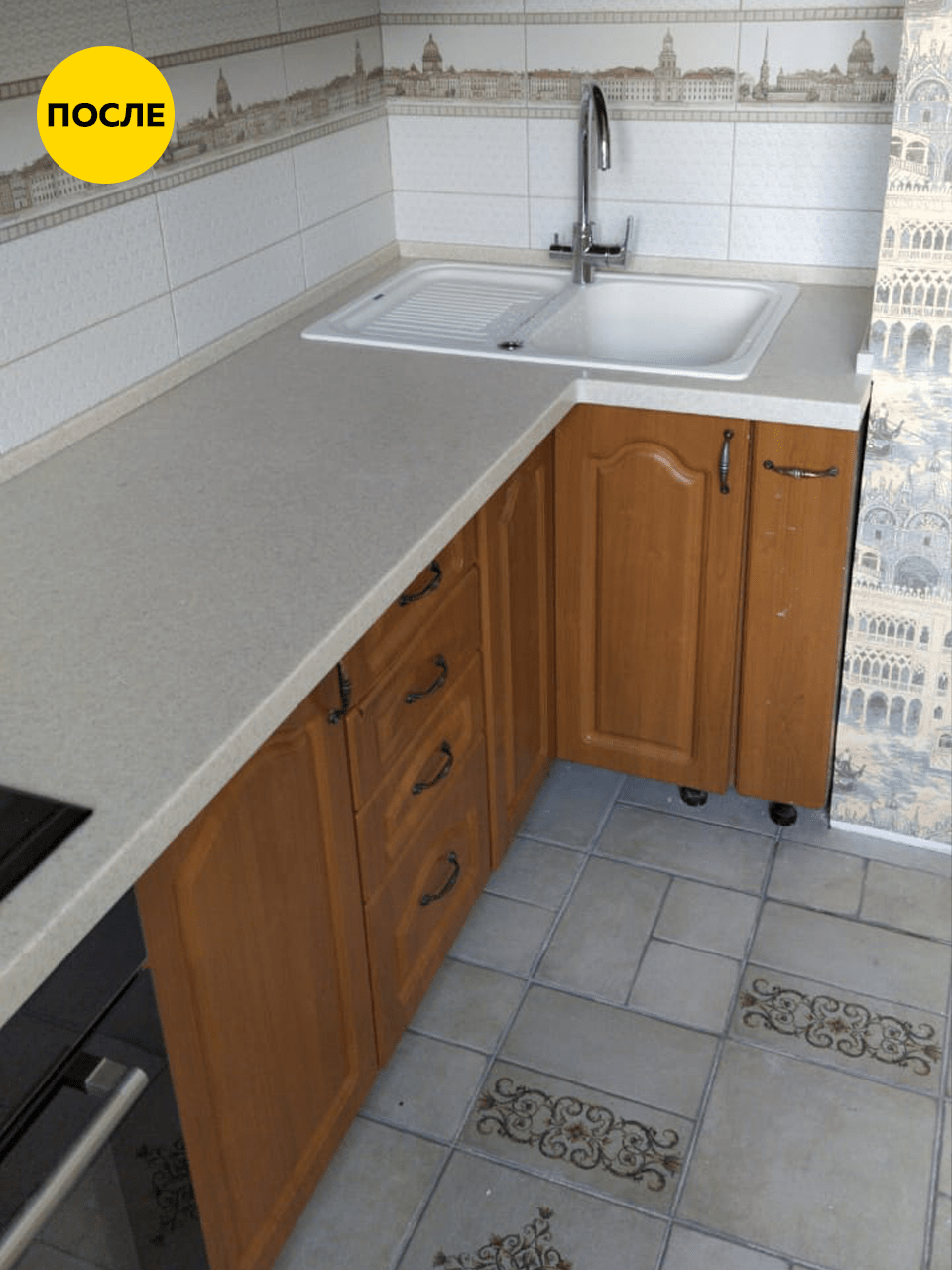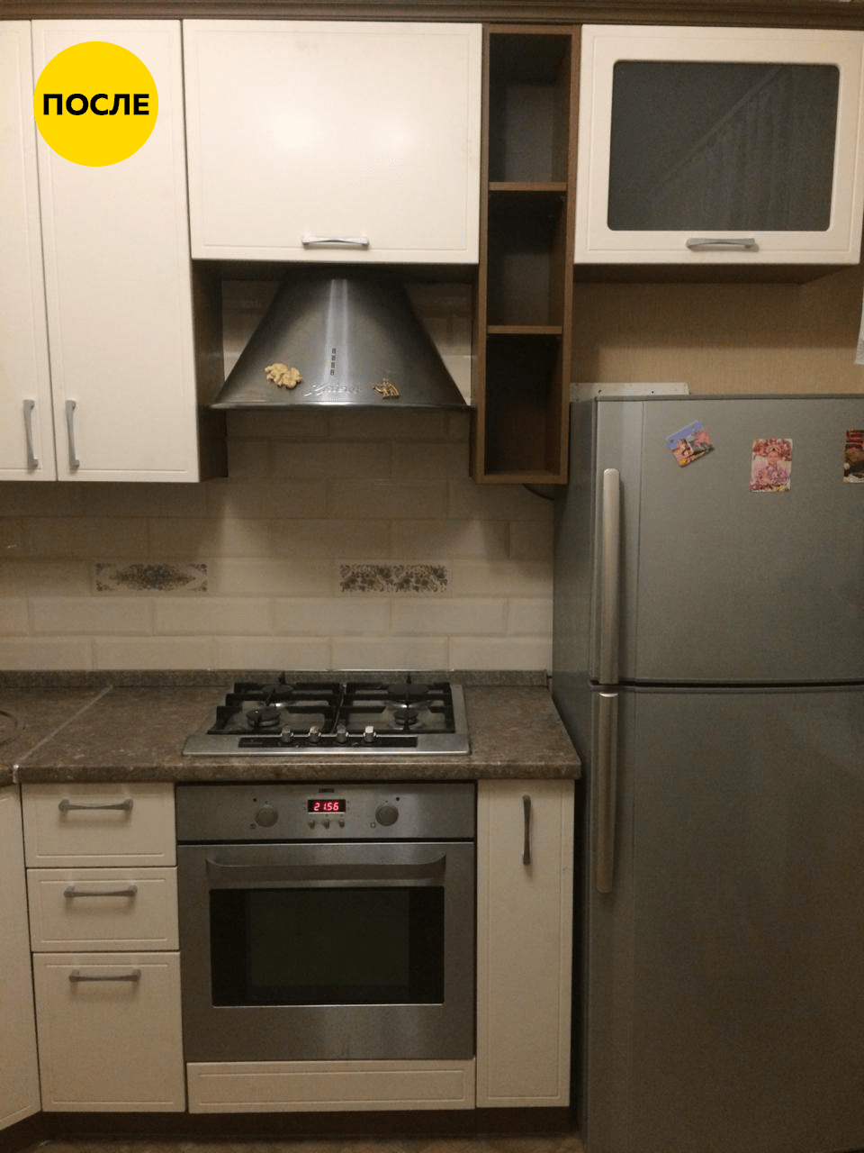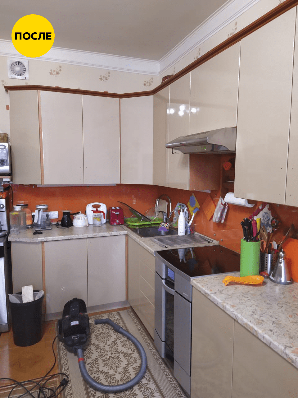 Установка кухни. Фасады Массив дуб+шпон, модель Элен (Бристель крем, патина шампань), корпус Эггер ваниль, кромка 2 мм, карниз Прованс, столешница искусственный камень Samsung AB 632, стекло сатин матированный, ручки бронза Флоренция, цоколь ПВХ ваниль, ящики тандембокс, авентос HF, бутылочница с доводчиком, сушка 2-х уровневая VIBO.